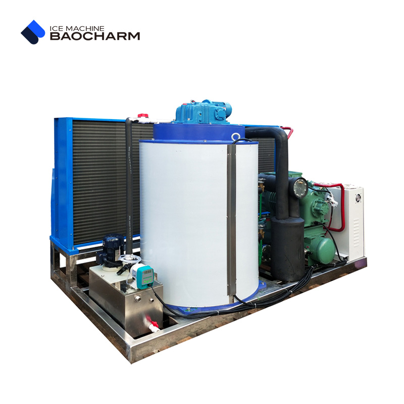 ABCPB-5T standar dikonfigurasi sebagai pembuat es serpihan air tawarPenggunaan air laut memerlukan model yang dirancang khusus dengan material tahan korosi (seperti titanium atau lapisan khusus) untuk evaporatornya. Mohon konsultasikan dengan tim kami untuk pembuat es air laut pilihan jika itu adalah kebutuhan utama Anda.